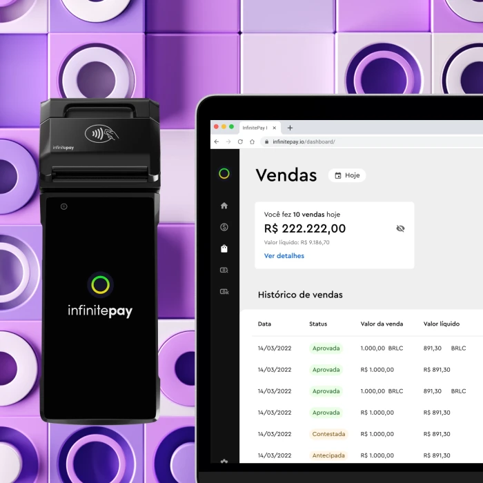 O dinheiro das suas vendas cai diretamente na sua conta digital da InfinitePay, trazendo praticidade e agilidade para o seu negócio. Além disso, você pode receber na hora ou em 1 dia útil